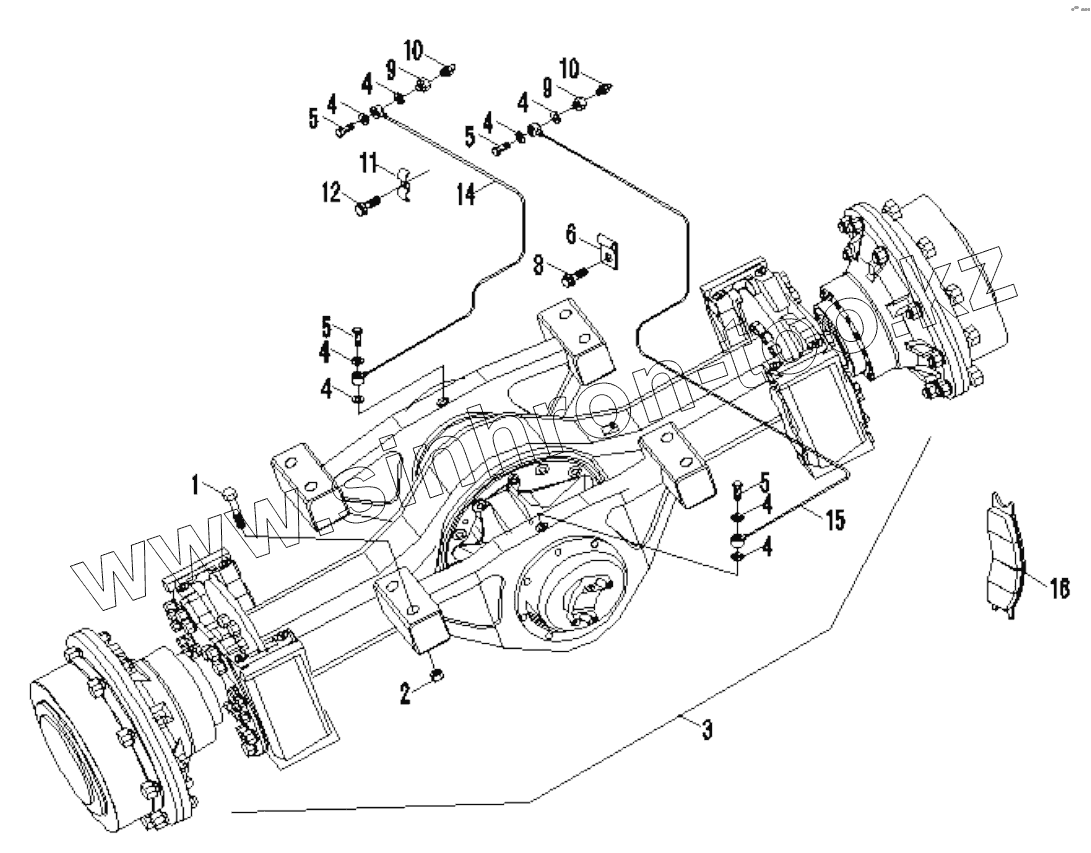 Каталог запасных частей к технике: Foton FL958G. 9F850-27A000000B0 REAR AXLE INSTALLATION