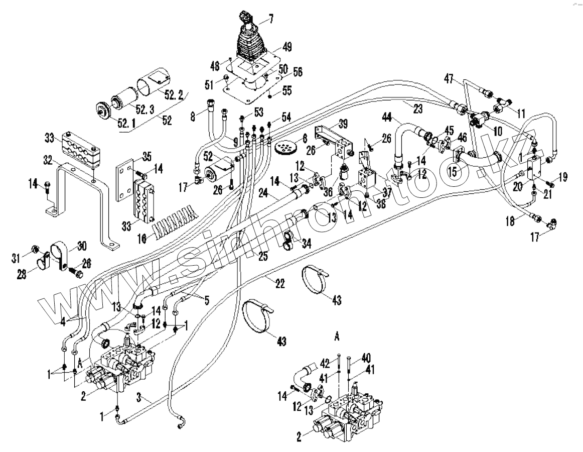 Каталог запасных частей к технике: Foton FL958G. 9F859-59D000000A0 HYDRAULIC CONTROL SYSTEM