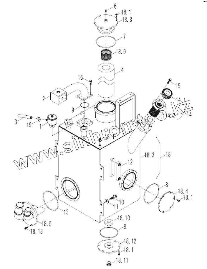 Каталог запасных частей к технике: Foton FL958G. 9F865-58A000000A0 HYDRAULIC OIL TANK ASSEMBLY