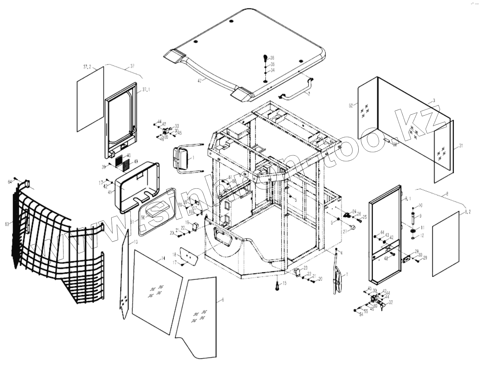 Каталог запасных частей к технике: Foton FL958G. 9G662-45C030000A0 CAB OUTER INSTALL ASSEMBLY