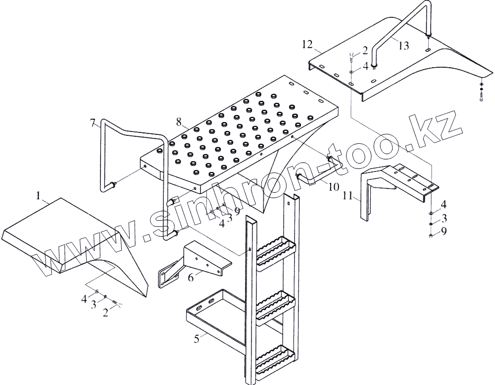 Каталог запасных частей к технике: Foton-FL936F. Брызговики, площадка и лестница