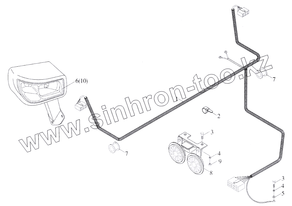 Каталог запасных частей к технике: Foton-FL936F. Электрооборудование на передней полураме