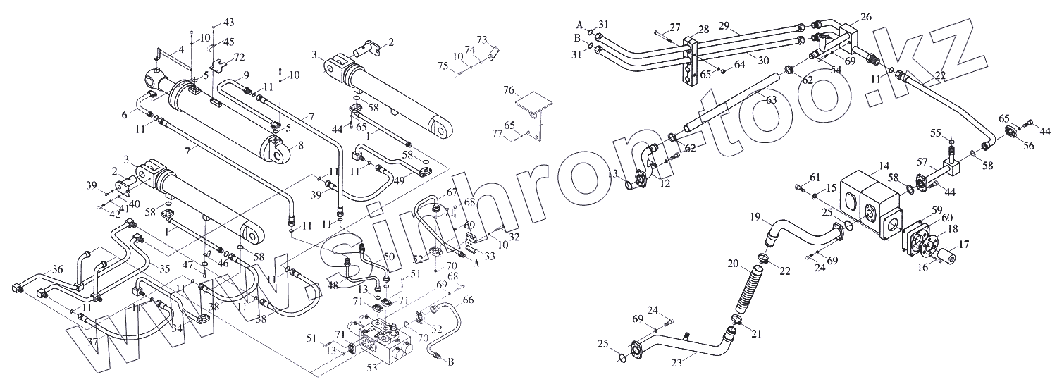 Каталог запасных частей к технике: Foton-FL936F. Гидросистема рабочего оборудования