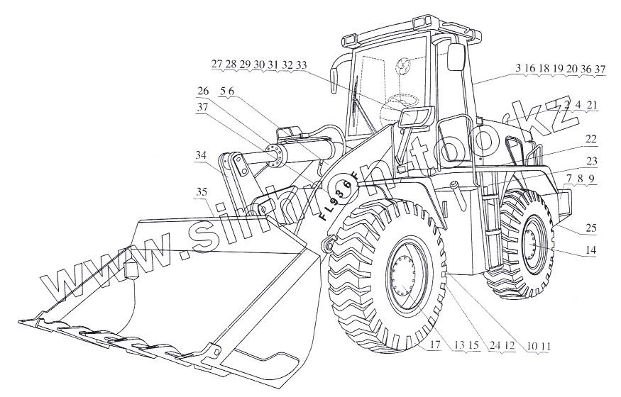 Каталог запасных частей к технике: Foton-FL936F. Общий вид погрузчика