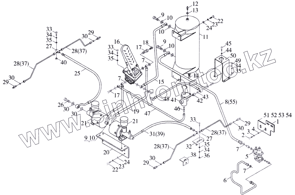 | 19 | 9D636-2802000 | Шланг выпускной газового тормозного клапана | |