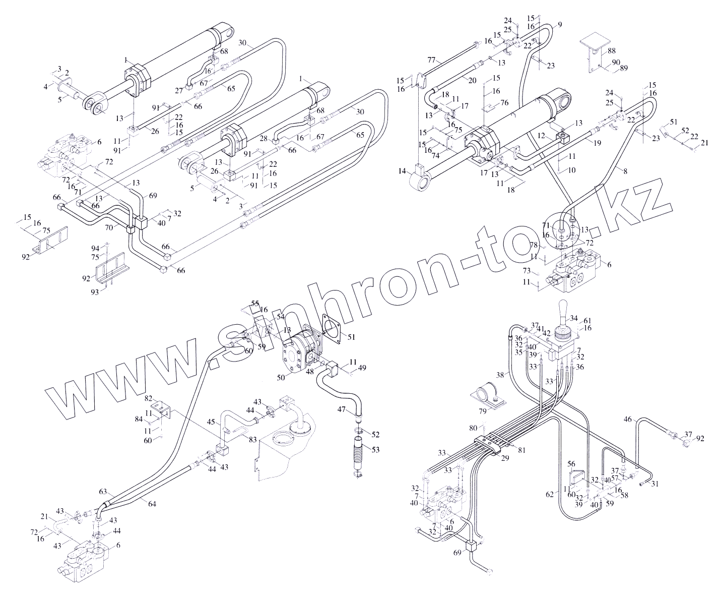 Каталог запасных частей к технике: Foton-FL958G. Гидравлическая система рабочей аппаратуры