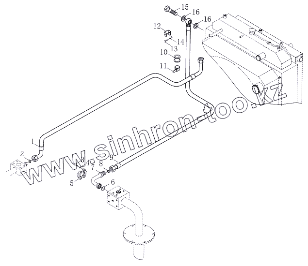Каталог запасных частей к технике: Foton-FL958G. Гидронасосная масляная теплоотводящая система