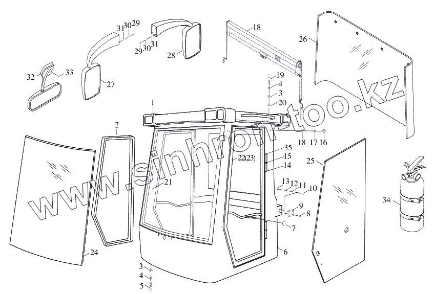 Каталог запасных частей к технике: Foton-FL958G. Кабина в сборе