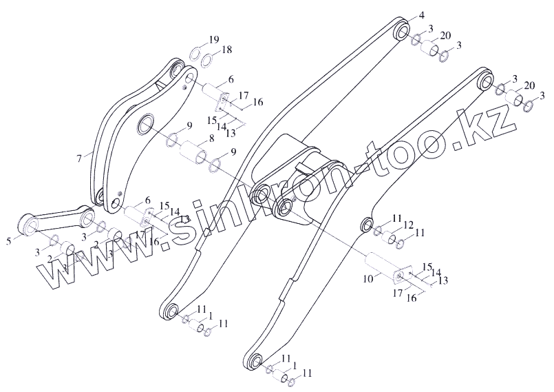 Каталог запасных частей к технике: Foton-FL958G. Механизм соединительного рычага
