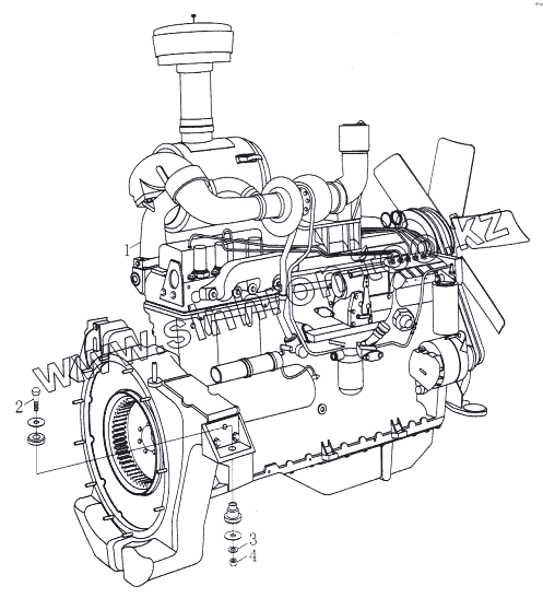 Каталог запасных частей к технике: Foton-FL958G. Монтаж двигателя