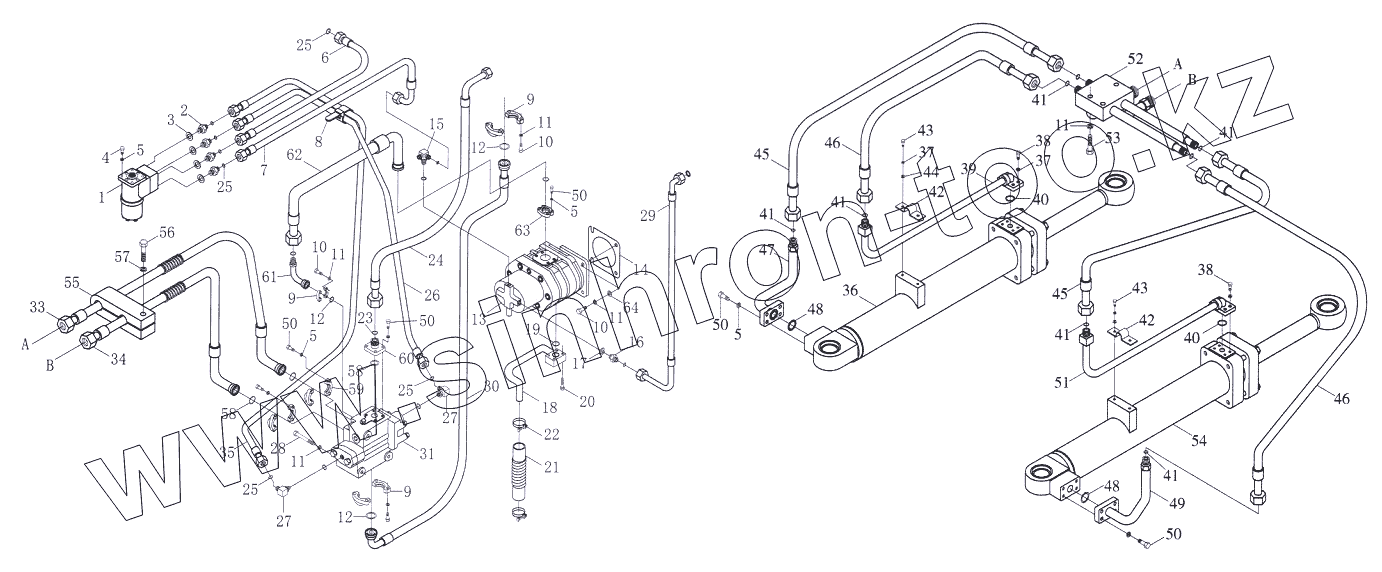 Каталог запасных частей к технике: Foton-FL958G. Поворотная гидронасосная система