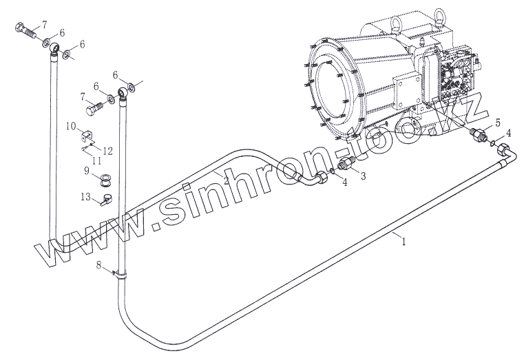 Каталог запасных частей к технике: Foton-FL958G. Система приводной масляной линии