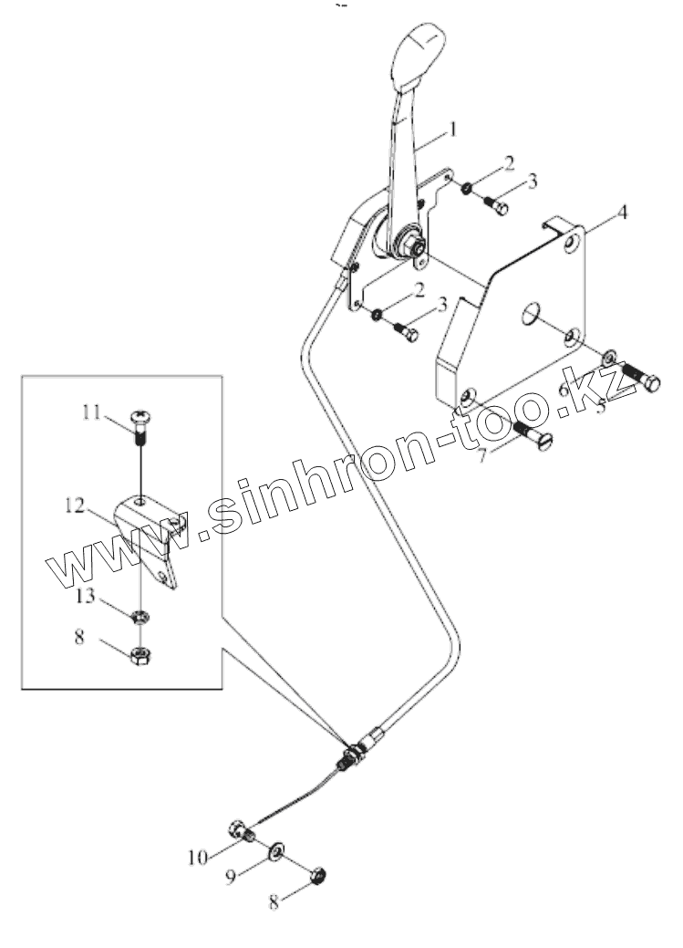 Каталог запасных частей к технике: Foton TB454-Q161Y20K. TB400.201F HAND THROTTLE ASSEMBLY
