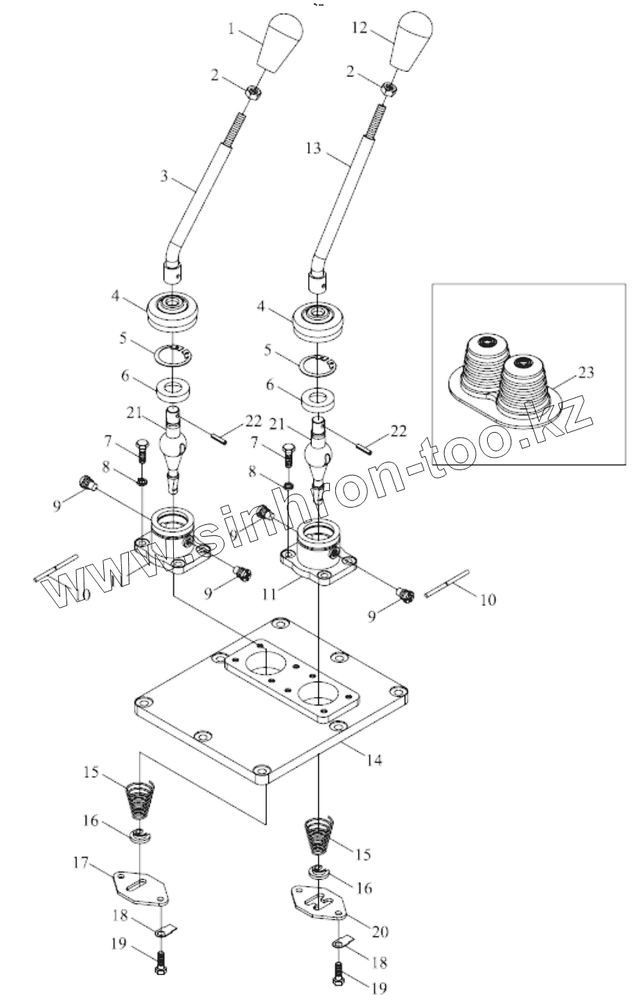 Каталог запасных частей к технике: Foton TB454-Q161Y20K. TB450.374C GEARBOX CONTROL MECHANISM ASSEMBLY-2