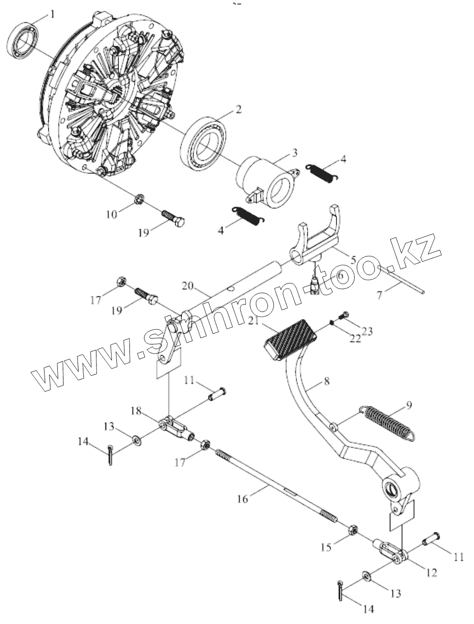 Каталог запасных частей к технике: Foton TB454-Q161Y20K. TB504.212 CLUTCH CONTROL MECHANISM ASSEMBLY