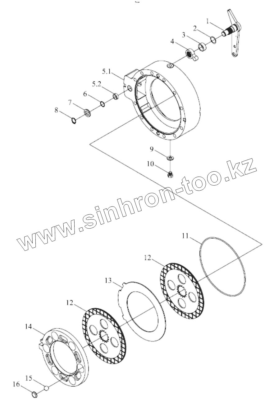 Каталог запасных частей к технике: Foton TB454-Q161Y20K. TB504.432 RIGHT BRAKE ASSEMBLY
