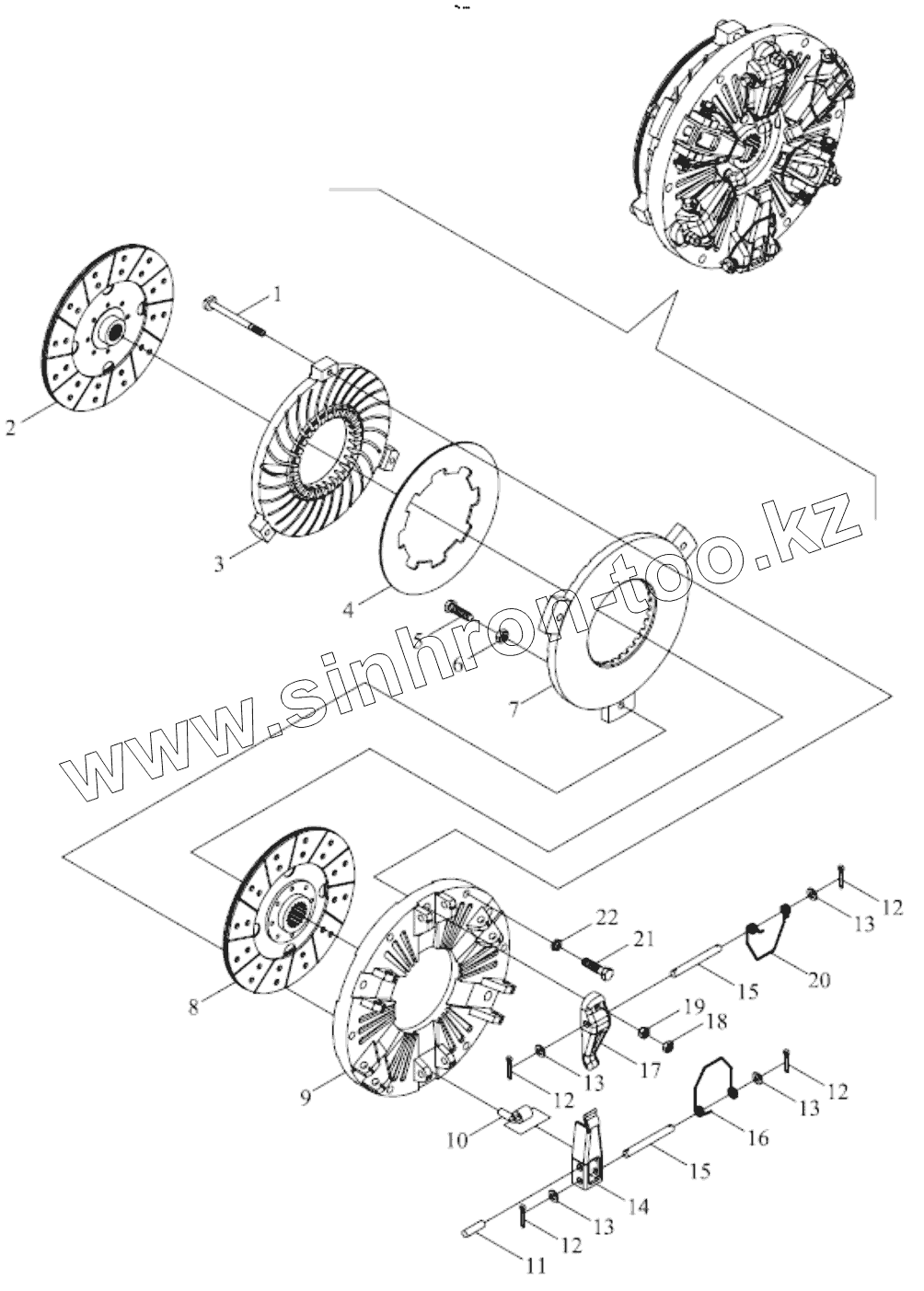 Каталог запасных частей к технике: Foton TB454-Q161Y20K. TB550.211 CLUTCH ASSEMBLY