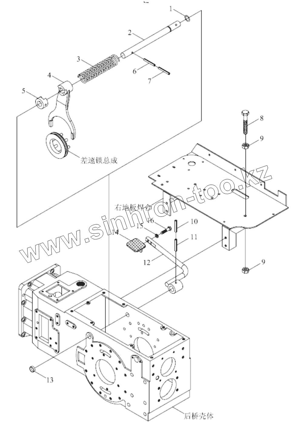 Каталог запасных частей к технике: Foton TB454-Q161Y20K. TB554.383A DIFFERENTIAL LOCK CONTROL MECHANISM ASSEMBLY
