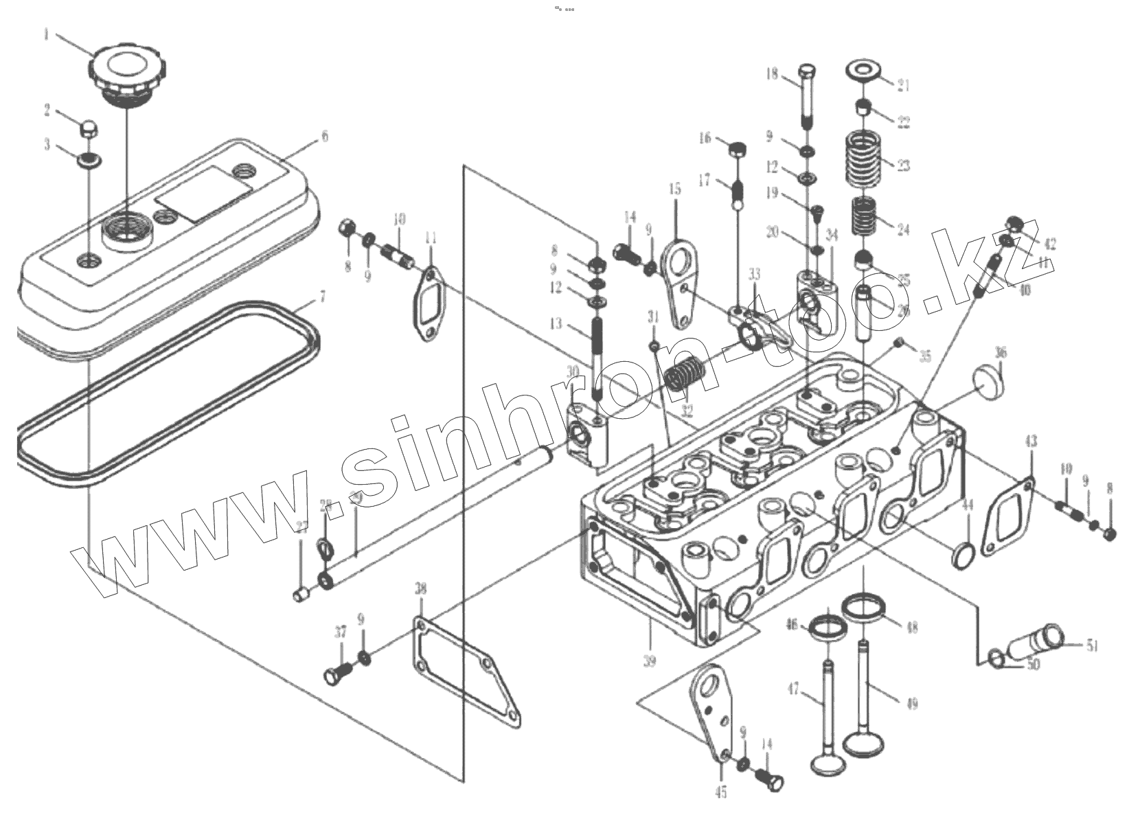 Каталог запасных частей к технике: Foton TL254 (TL1A254-001K). KM385BT-1F-7 CYLINDER HEAD ASSY