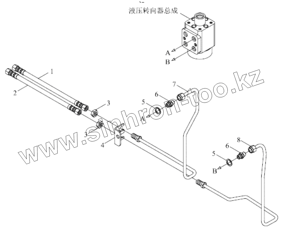 Каталог запасных частей к технике: Foton TL254 (TL1A254-001K). TE254.402D-2 STEERING PIPE ASSEMBLY