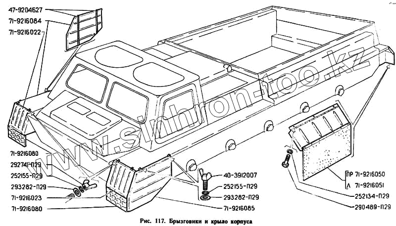 Каталог запасных частей к технике: ГАЗ-71. Брызговики и крыло корпуса