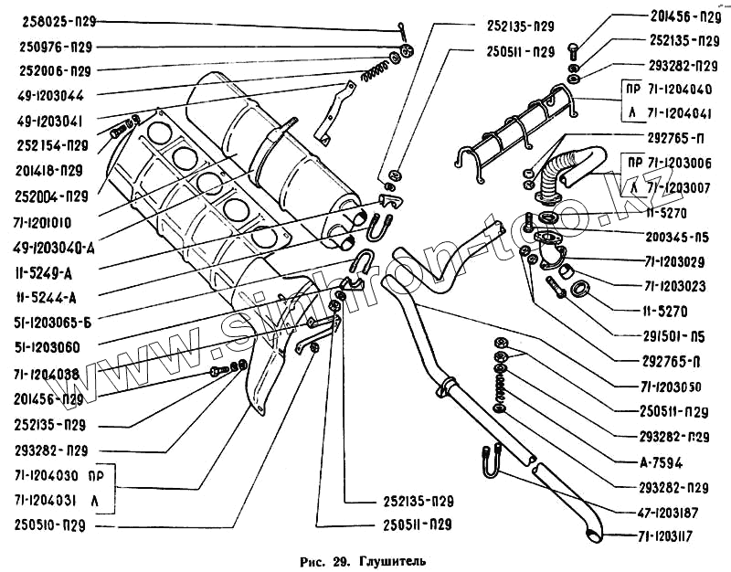 Каталог запасных частей к технике: ГАЗ-71. Глушитель