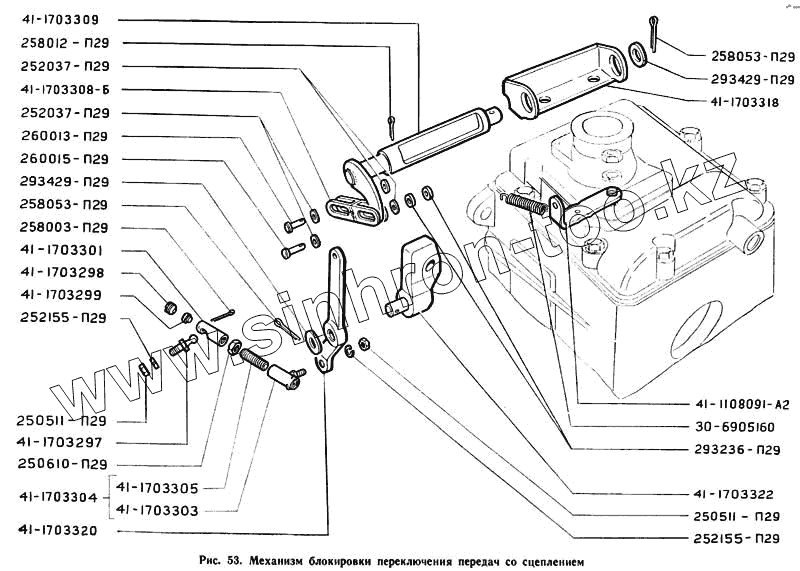 Каталог запасных частей к технике: ГАЗ-71. Механизм блокировки переключения передач со сцеплением
