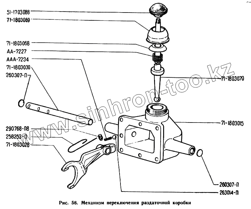Каталог запасных частей к технике: ГАЗ-71. Механизм переключения раздаточной коробки