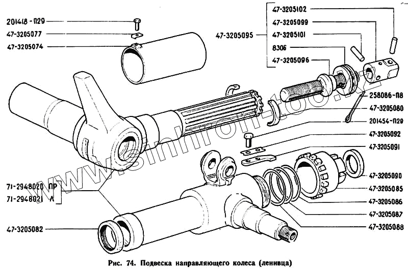 Каталог запасных частей к технике: ГАЗ-71. Подвеска направляющего колеса (ленивца)