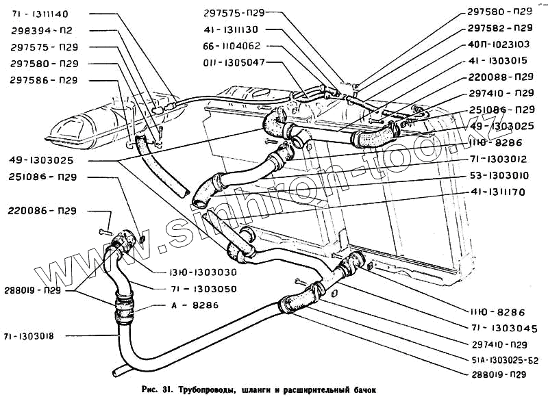 Каталог запасных частей к технике: ГАЗ-71. Трубопроводы, шланги и расширительный бачок