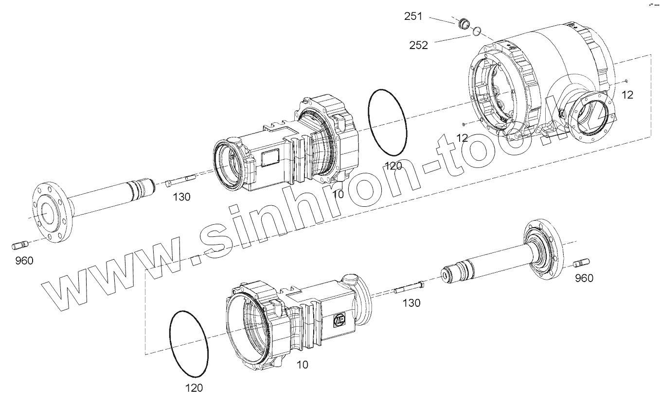 Каталог запасных частей к технике: HAMM 3410. DIFFERENTIAL CASE AND AXLE BODY