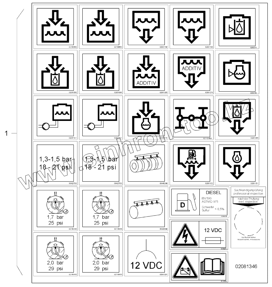 Каталог запасных частей к технике: HAMM GRW 15. STICKER ARRANGEMENT