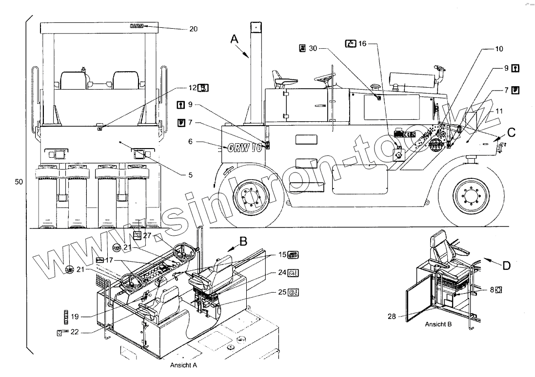 Каталог запасных частей к технике: HAMM GRW 15. STICKER ARRANGEMENT