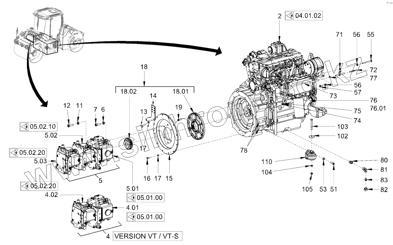 Каталог запасных частей к технике: HAMM HD110. PUMP DRIVE AND ENGINE ASSEMBLY