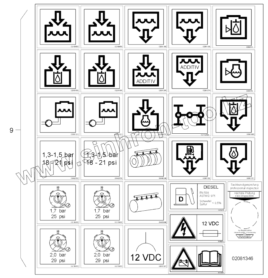 Каталог запасных частей к технике: HAMM HD110. STICKER ARRANGEMENT