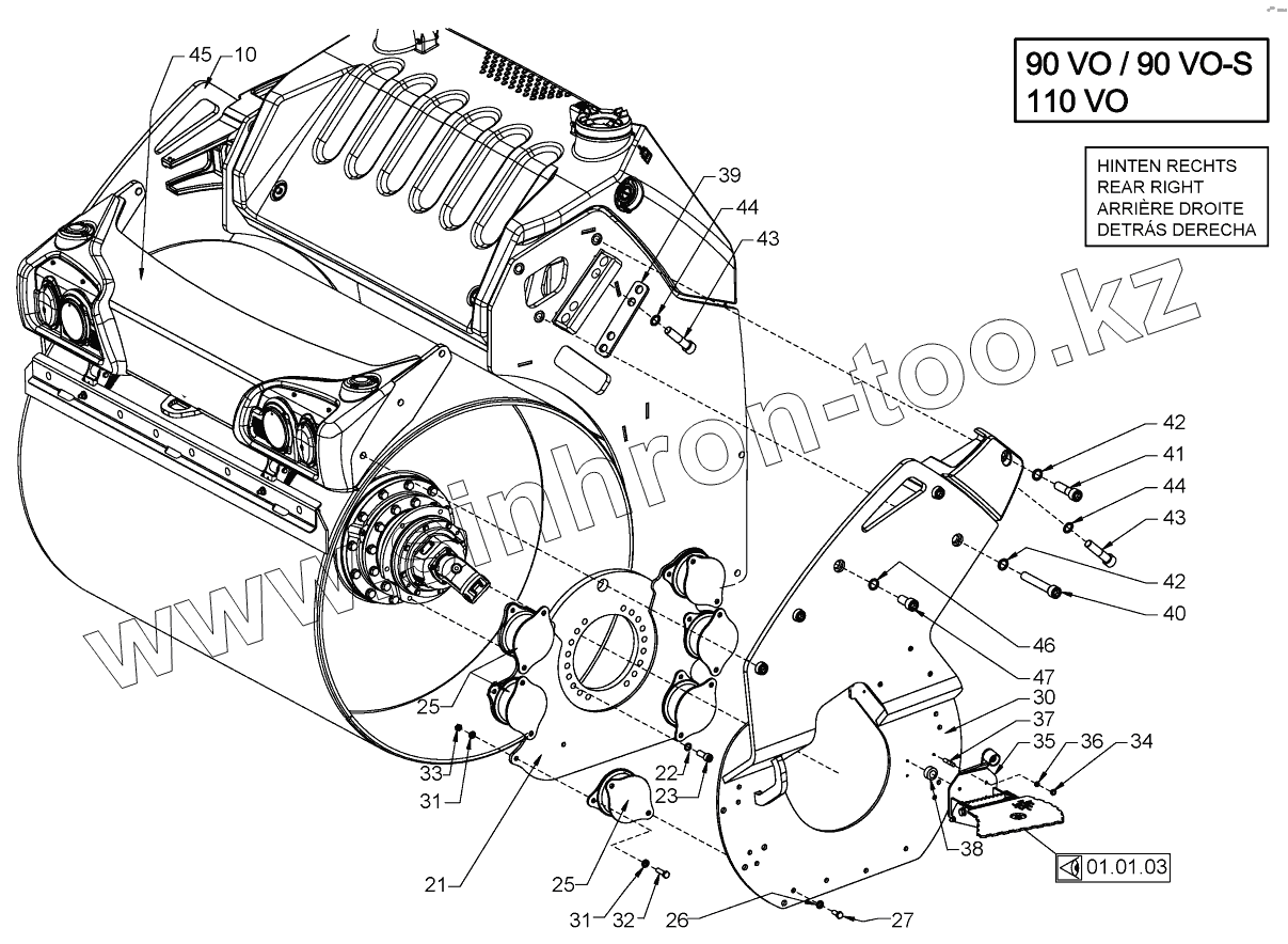 Каталог запасных частей к технике: HAMM HD110. SUSPENSION (ROLLER DRUM REAR)