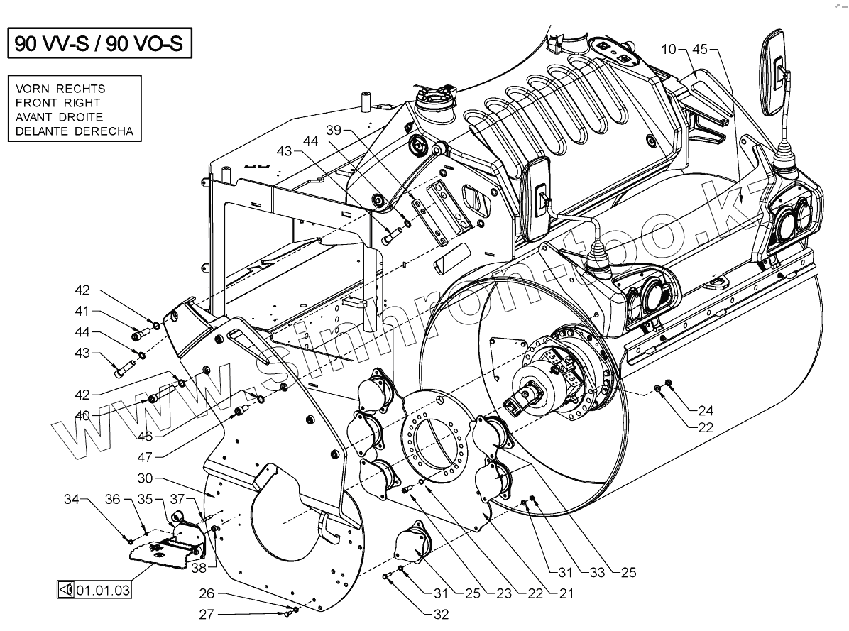 Каталог запасных частей к технике: HAMM HD90. SUSPENSION (ROLLER DRUM FRONT)
