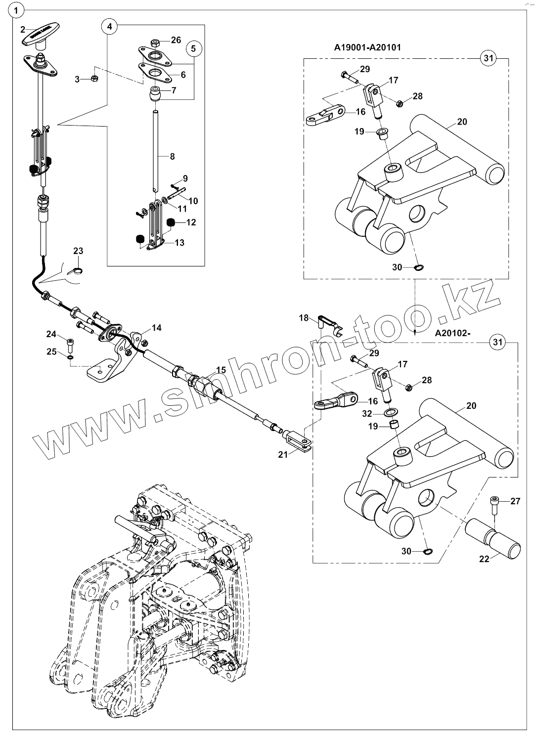 Каталог запасных частей к технике: Hidromek 102B Maestro-ZF. BOOM LOCKING AND MECHANISM A19001-
