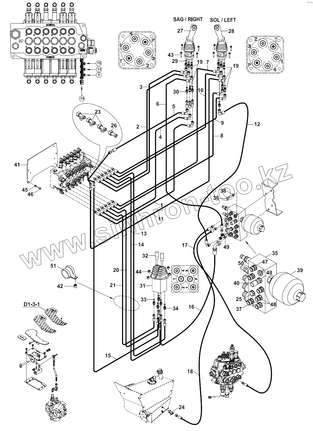 Каталог запасных частей к технике: Hidromek 102B Maestro-ZF. CIRCUIT, HYDRAULIC, JOYSTICK, TB A21179-