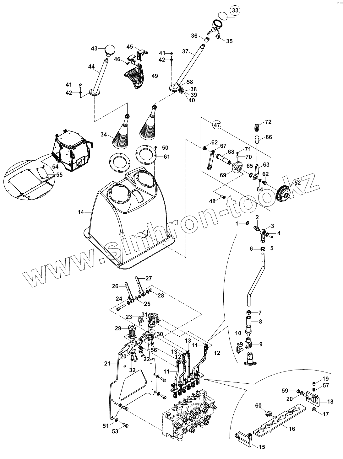 Каталог запасных частей к технике: Hidromek 102B Maestro-ZF. CONTROL SYSTEM, BACKHOE A19001-