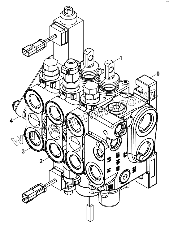 BACKHOE CONTROL VALVE BLOCK AND ADAPTERS, WITH LEVER CONTROL, NB A19001-
