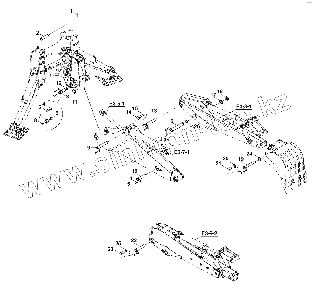 Каталог запасных частей к технике: Hidromek 102B Maestro-ZF. MOUNTINGS, BACKHOE COMPONENTS A19001-