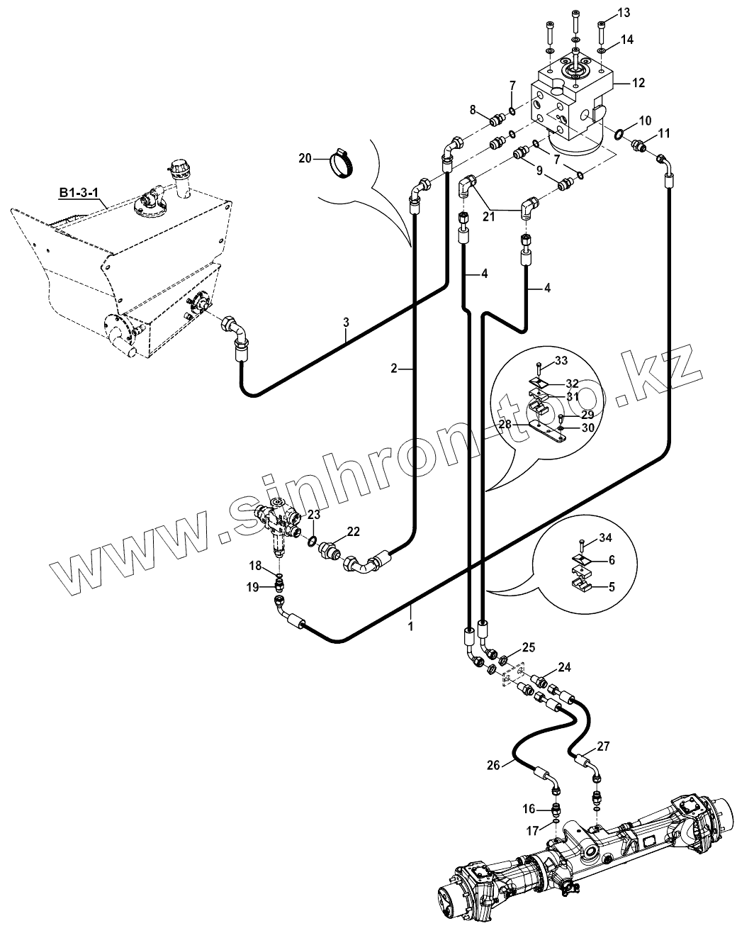 Каталог запасных частей к технике: Hidromek 102B Maestro-ZF. STEERING, CIRCUIT MOUNTING A19001-