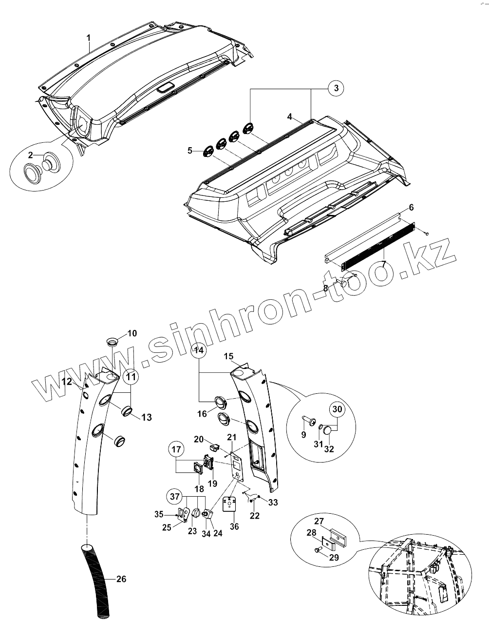 Side post trim, right, assy