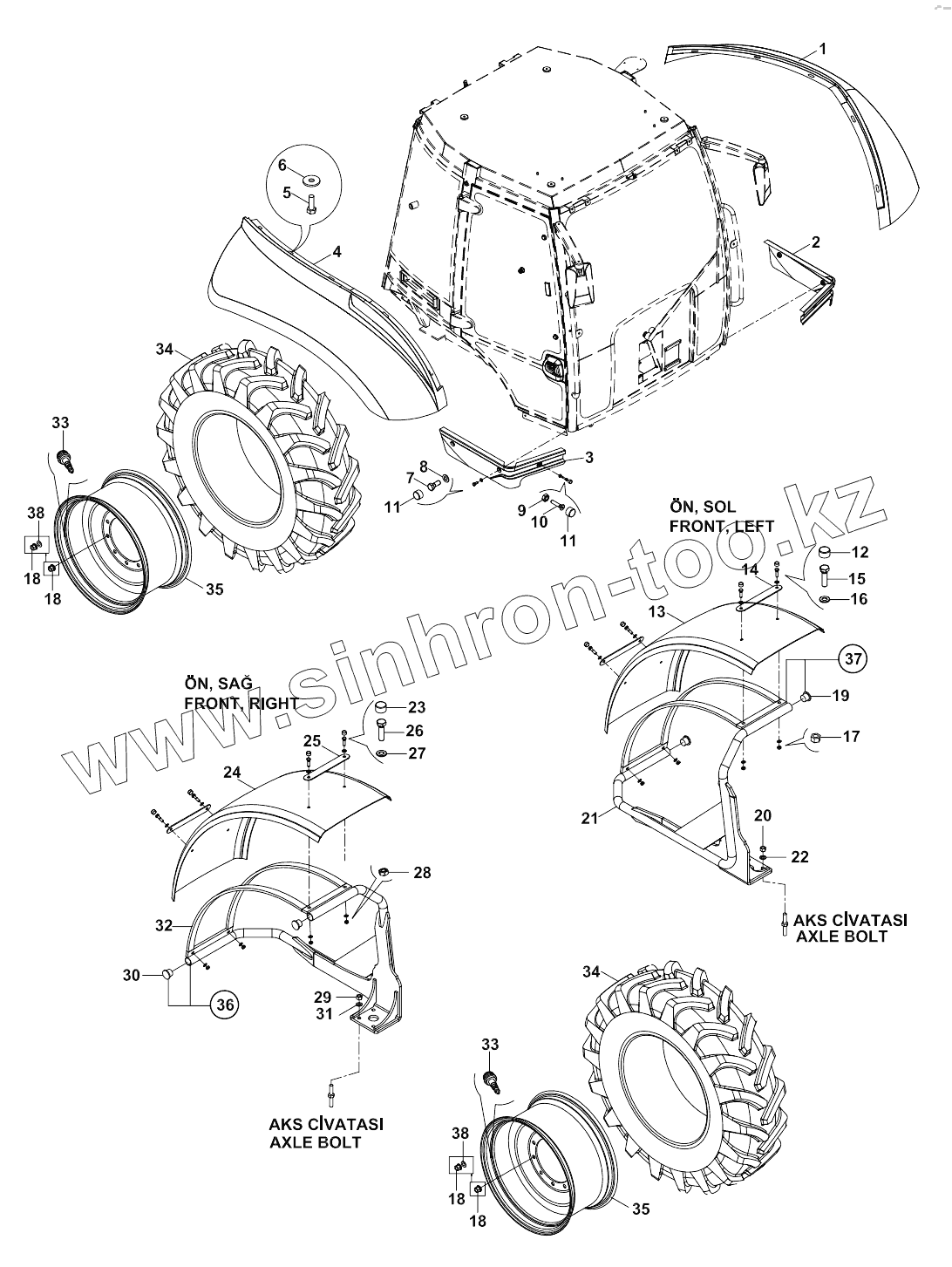 Каталог запасных частей к технике: Hidromek 102S MAESTRO. WHEEL & FENDERS A80001 -