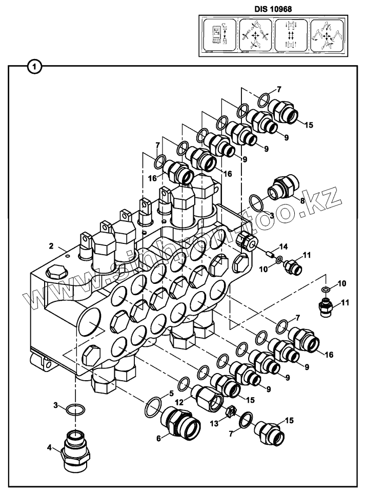 Каталог запасных частей к технике: Hidromek HMK 102B. BACKHOE CONTROL VALVE BLOCK AND ADAPTERS, DIS10968