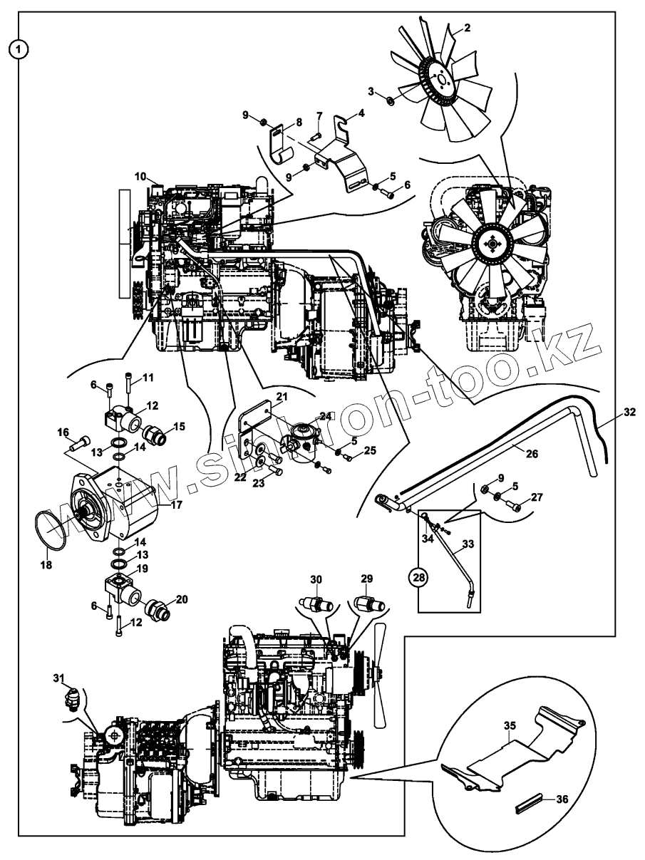 Каталог запасных частей к технике: Hidromek HMK 102B. ENGINE ASSEMBLY, GREEN 2