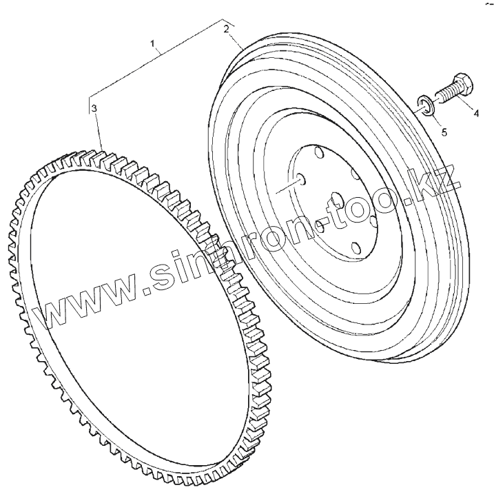 Каталог запасных частей к технике: Hidromek HMK 102B. FLYWHEEL & STARTER RING, ENGINE 1104C-44T, RG38101
