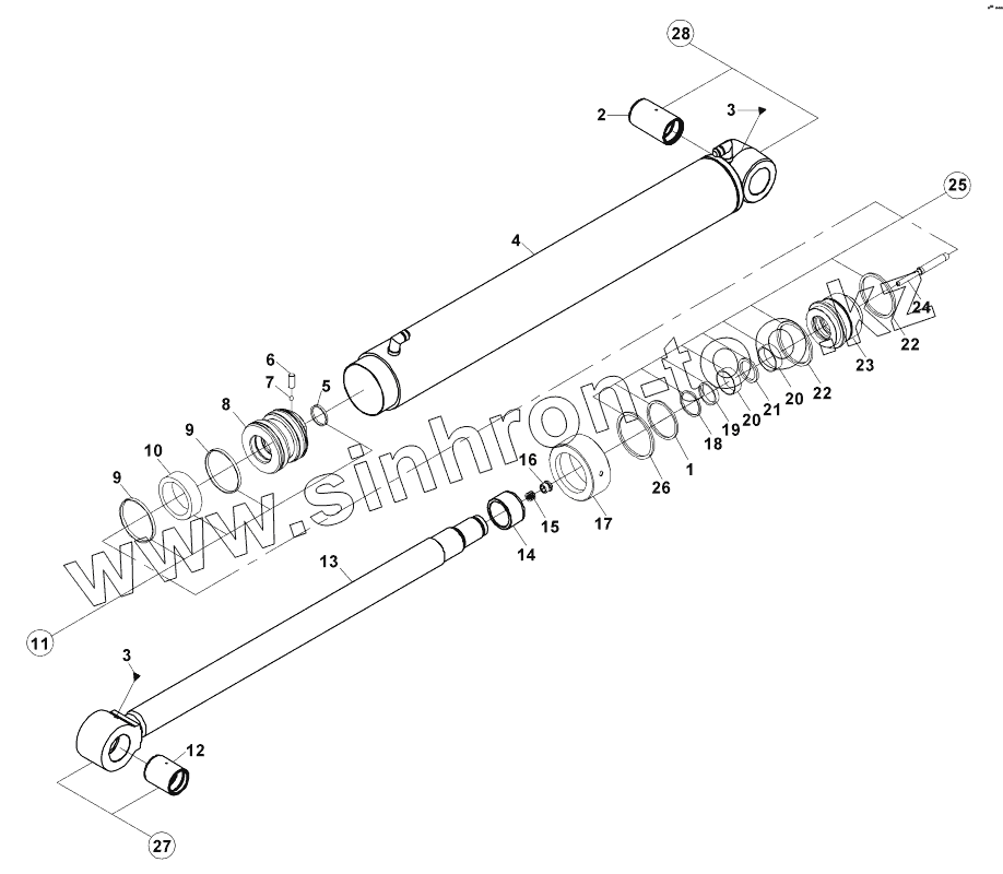 Каталог запасных частей к технике: Hidromek HMK 102B ALPHA. ARM CYLINDER, BACKHOE B060400 -