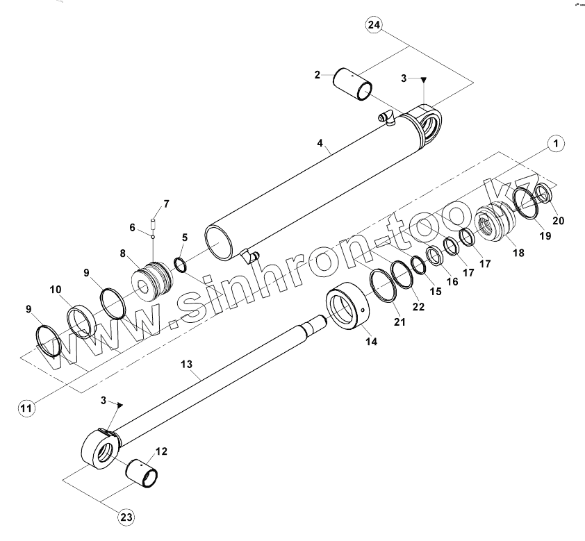 Каталог запасных частей к технике: Hidromek HMK 102B ALPHA. BUCKET CYLINDER, BACKHOE, TELESCOPIC B060001 -